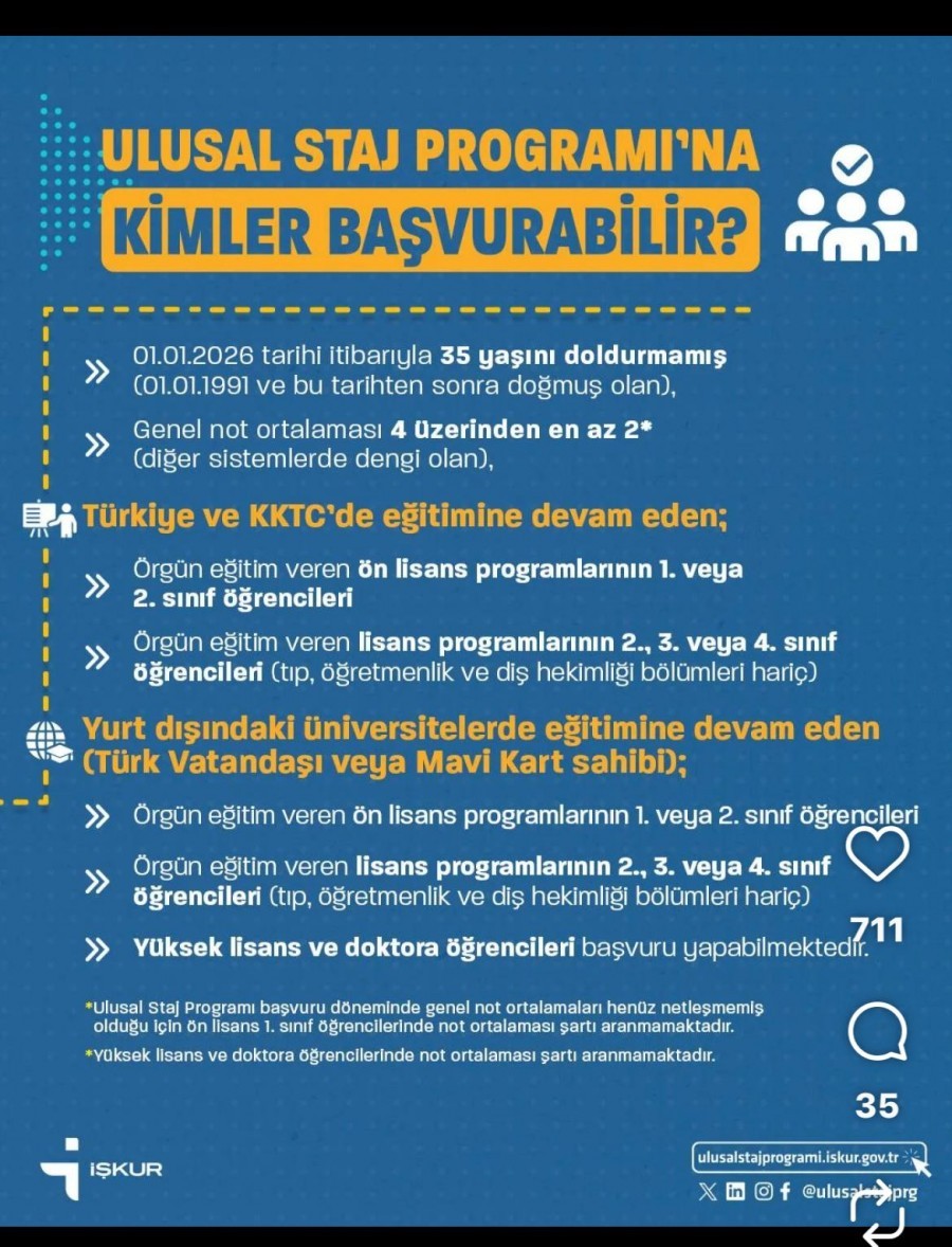 Başvuru Adresi: https://ulusalstajprogrami.iskur.gov.tr